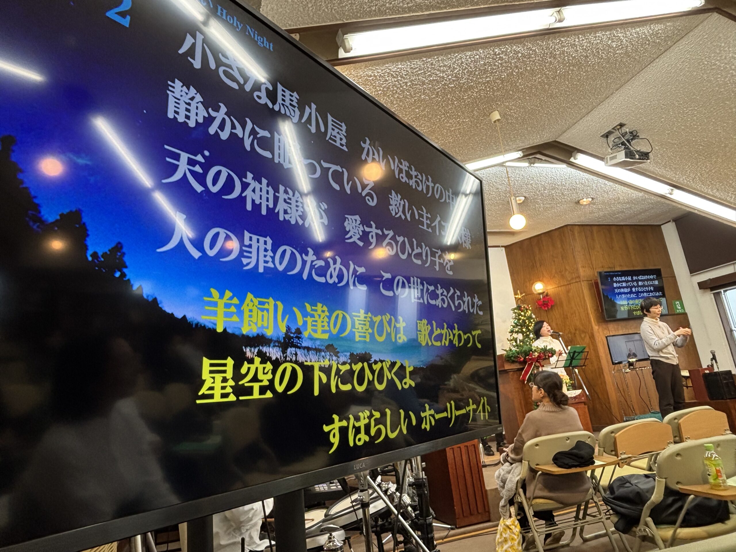 9時から第一礼拝、11時から第二礼拝、徐々に陽が明るく差してきました。最高気温18℃、暖かいクリスマス礼拝を迎えることとなりました。