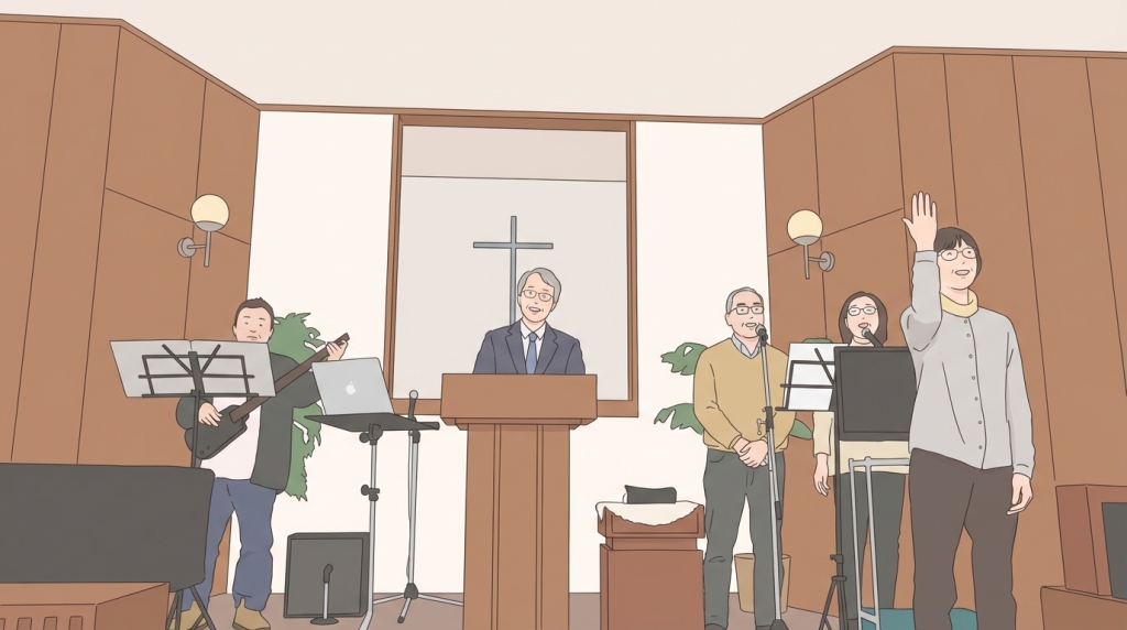 というように、ちょっと違うところはありましたが、司会者の裁量の中。いつもの教会です。