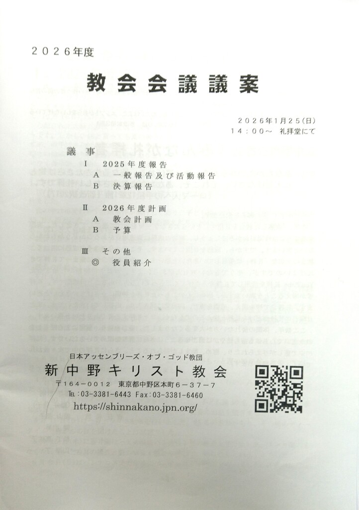 これが2026年1月25日の新中野キリスト教会の歩みでした。 ここ前お読みくださり感謝いたします。皆様の上に主イエス・キリストの祝福が豊かに注がれますようにお祈り申し上げます。