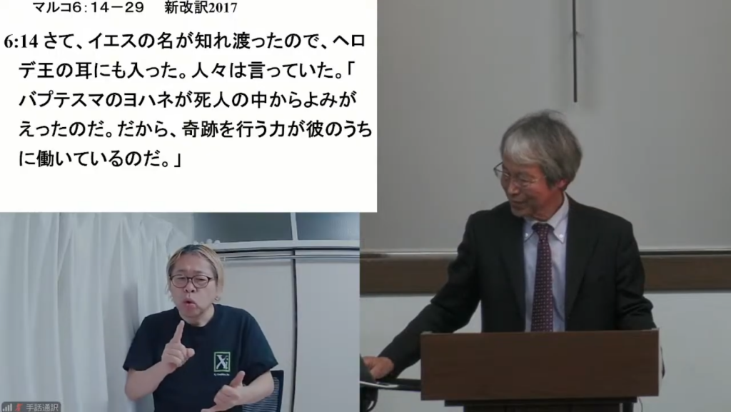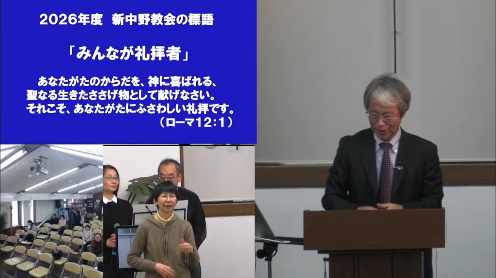 聖書があって。今日は交読ではなくて、ドラマ聖書でした。この前もそうですが、皆さんは聞くだけなんですが、私は通訳。まぁ実のところ、ドラマ聖書は交読よりもスピードが遅いので、交読の時ほどは大変ではなかったりします。